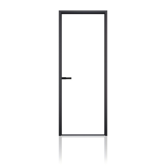 Ultra Slim Frame Single Glass Waterproof Aluminium Interior Swing Bathroom Door |